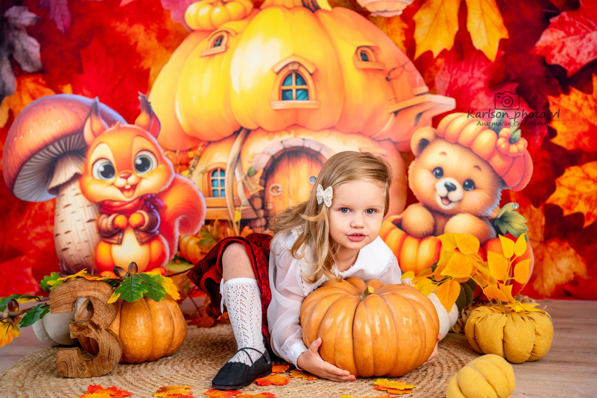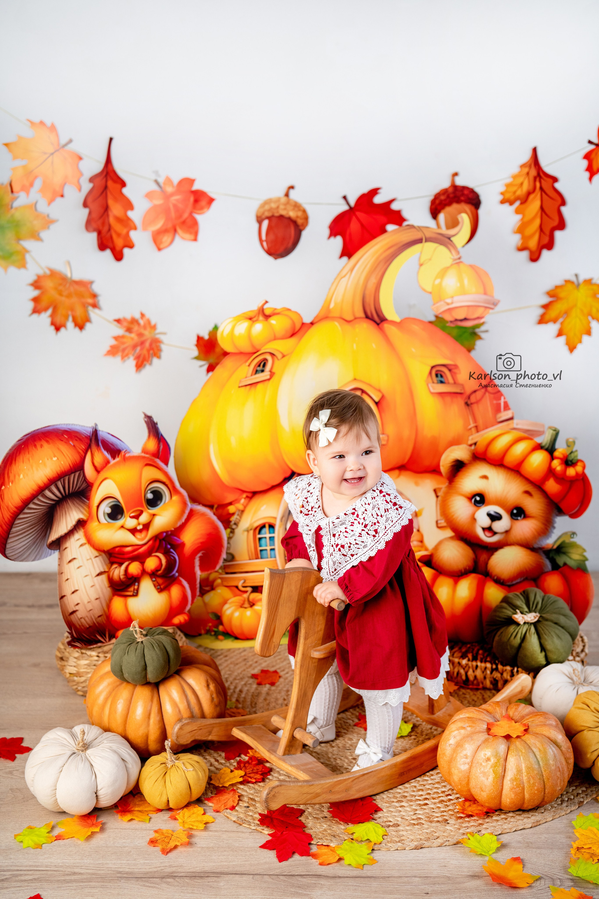 Самая актуальная фотозона для осенних годовасиков, платье и костюмчик на фото в наличии